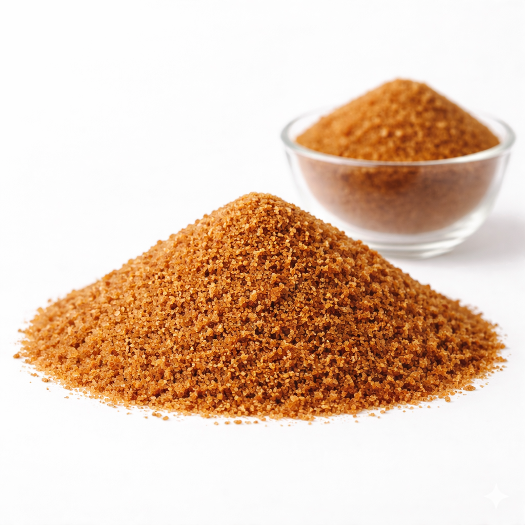O Açúcar de Coco é um adoçante de origem natural, obtido da seiva das flores do coqueiro, com sabor suave e levemente caramelizado.